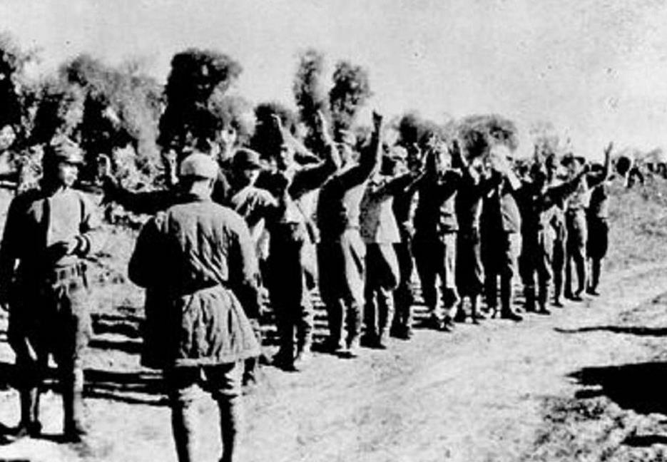 图为侵华日军向中国军队投降。