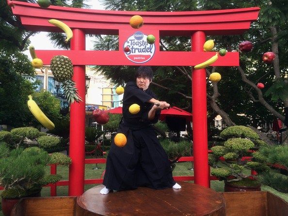 为了宣传Toaster Strudel推出的新产品,町井勋表演了快刀斩水果的绝技。