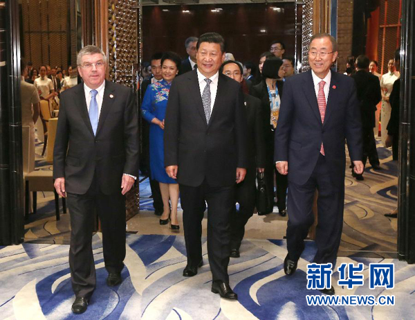 欢迎宴会前,习近平和彭丽媛还会见了国际奥委会贵宾。