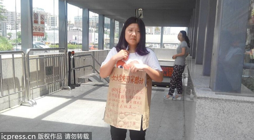 深圳地铁口女大学生剪刀架脖子讨薪 老板:关门也不给工资