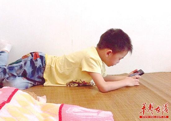 8月20日下午,6岁的明亮一个人躲在卧室里专注地玩手机。记者 王为薇 摄