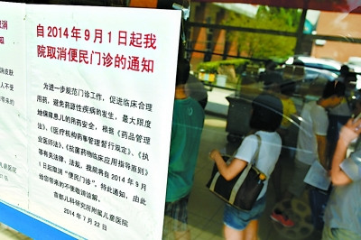 “为最大限度地保障患儿的用药安全,儿研所将从9月1日起取消便民门诊……”日前,首都儿研所“便民门诊”门口贴出的一则通知(见右图),再次引发了人们对各大医院关闭“便民门诊”的关注。各大医院为什么要关闭“便民门诊”?关闭之后会给老百姓用药带来哪些不便?在医改大背景下,新的便民医疗措施是否会应运而生?这些都成了老百姓关心的问题。