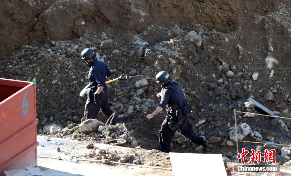 8月26日,香港北角一建筑工地发现二战时日军遗留的炸弹,警方先后两次引爆。警方爆炸品处理主任李展超说,引爆的是一颗穿甲弹,直径约15厘米,重约36公斤,由于弹壳较厚,首次引爆未能完全切开弹壳,要第二次才可完全引爆。炸弹具威协力,第二次引爆时,警方用100个沙袋覆盖,碎片仍飞至100米外,若在一般情况下爆炸,将构成危险。图为警方检查第一次引爆后的现场。中新社发 张宇 摄