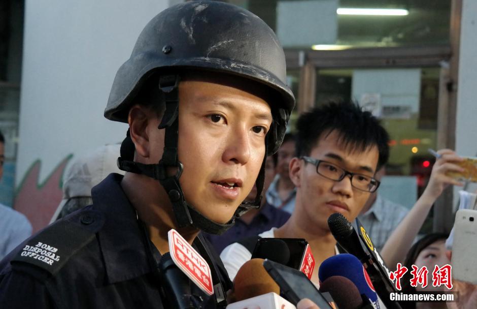 8月26日,香港北角一建筑工地发现二战时日军遗留的炸弹,警方先后两次引爆。警方爆炸品处理主任李展超说,引爆的是一颗穿甲弹,直径约15厘米,重约36公斤,由于弹壳较厚,首次引爆未能完全切开弹壳,要第二次才可完全引爆。炸弹具威协力,第二次引爆时,警方用100个沙袋覆盖,碎片仍飞至100米外,若在一般情况下爆炸,将构成危险。中新社发 张宇 摄
