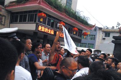 湖南龙山,学生聚集现场。
