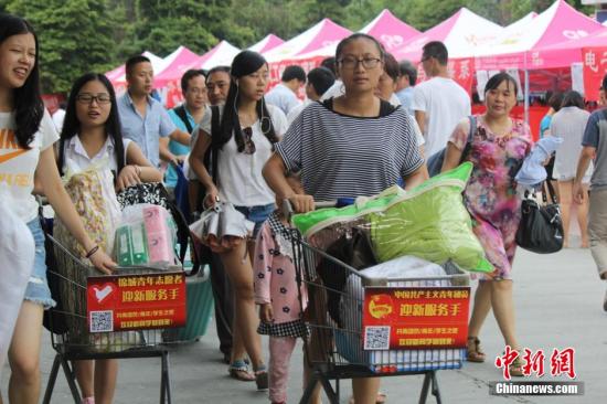 9月3日~4日,是华中师范大学的新生报到时间。负责大一迎新工作的新闻与传播学院辅导员黄怡宁介绍,学?;岵扇⌒律?ldquo;一站式”网上自助报到。校园卡、寝室钥匙、组织关系等一切由志愿者负责为新生交接?;柒樯埽S碌睦砟钍?ldquo;回归平静”,学校内不再有过多的标语和彩旗。新生入学后,因为要军训,中秋节无假期,院里打算开展新老生联谊活动,一起过中秋节。