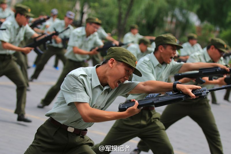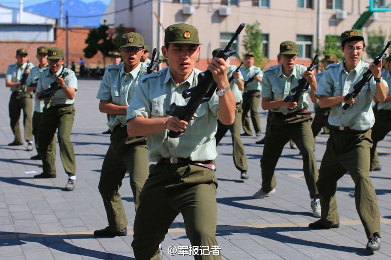 实拍北大新生军训:持步枪练刺杀 妹子萌萌哒