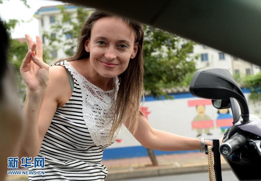 9月1日,安娜骑着电动车与小区的一位车主打招呼。安娜是一位典型的乌克兰美女,2001年到位于浙江金华市的浙江师范大学求学,毕业后嫁给一名中国男子,定居在金华。2013年11月,安娜自告奋勇,加上很多业主的支持,当上了金华市怡景园小区的业委会主任。近一年来,安娜管理着浙江省金华市这个只有4幢房子的老小区,除了她经营的西餐厅,她把所有的时间都花在做好“小区总理”的职责上,从鸡毛蒜皮的小事到小区的环境规划,她都亲力亲为。她心直口快、爱管闲事,在小区居民的眼里,她既是一名时尚的乌克兰美女,又是一名典型的“中国式大妈”。新华社记者 王定昶 摄 图片来源:新华网