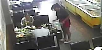 9月2日12点50分,小倩和小庆一起来到义乌苏溪的“好日子”自助烧烤。当时店内的客人不多,在监控拍到的范围内,只有他们两个人在座。小庆觉得烧烤的火有点小,起身叫来服务员。
