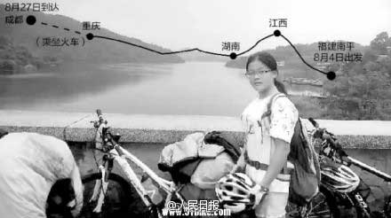 出发前一天,陆享璇才去买了辆近2000元的女式山地车。她用电子地图计算过,从南平出发,一路要经过福建、江西、湖南、重庆,最后才到四川,按照每天100多公里的正常速度,要走20多天。