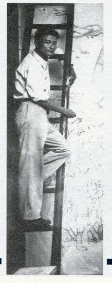 1938年,张乐平在武汉黄鹤矶头绘制巨幅宣传壁画《抗战到底》