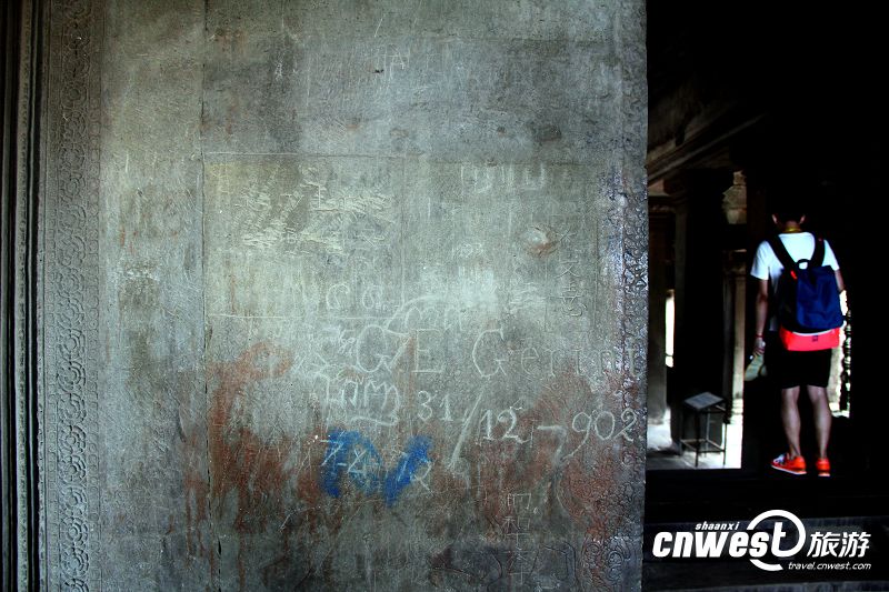 小吴哥庙中,可以看到许多被游客乱刻乱画的痕迹,“到此一游”堪称世界性的顽疾。