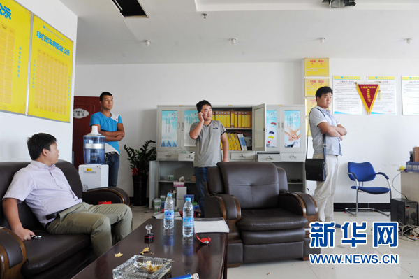 在兴麟房产银川总公司,几位前来讨要首付款的购房者在等待(9月4日摄)。新华社记者 彭昭之 摄