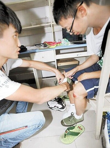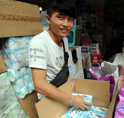 大三男生向新生推销卫生巾鞋垫。