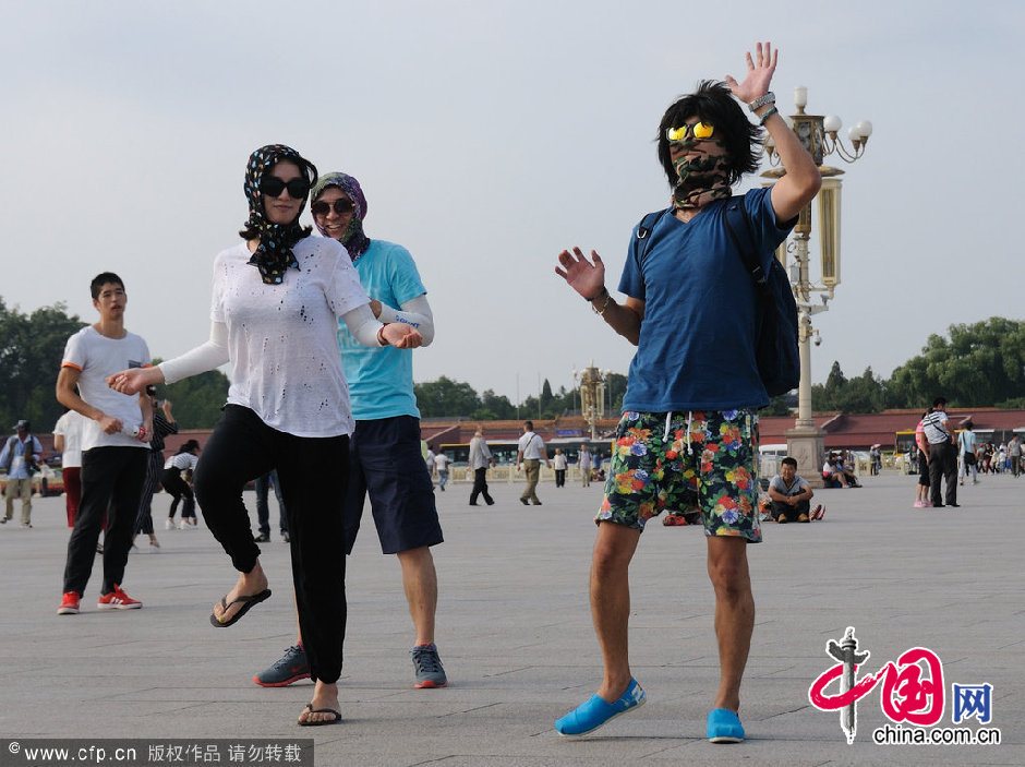 中国网9月11日讯 2014年09月10日,北京,几位韩国游客在天安门广场跳起小苹果舞并拍照留影,他们姿态各异、动感十足的舞姿成为一道时尚有趣的风景,吸引了过往游客的目光。