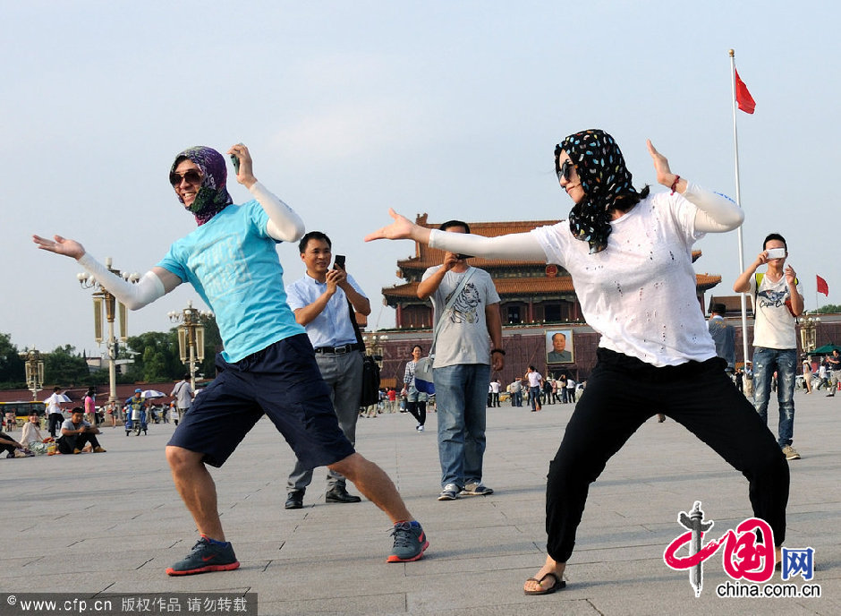 韩国游客天安门广场跳“小苹果” 萌态酷姿夺眼球(组图)