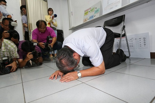 台湾馊水油公司董事长下跪道歉:连累下游 心如刀割