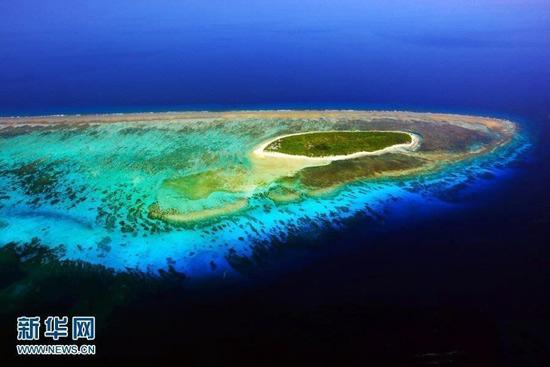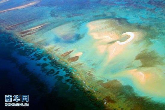图为西沙晋卿岛犹如一条热带鱼,色彩斑斓。