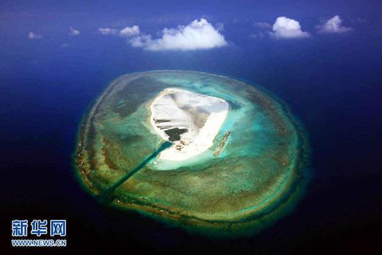 图为西沙中建岛犹如一张硕大的荷叶。