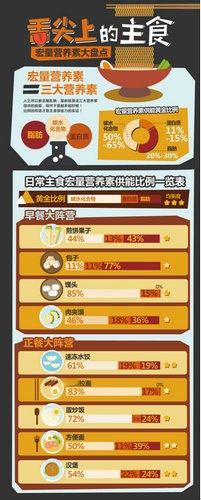 各类方便主食宏量营养素比例对照: