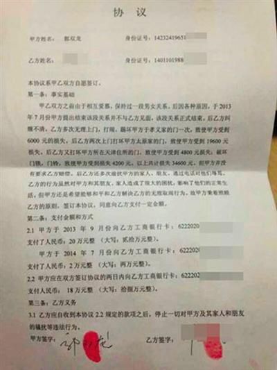 原标题:山西一公职人员被曝40万签“包养终止协议”