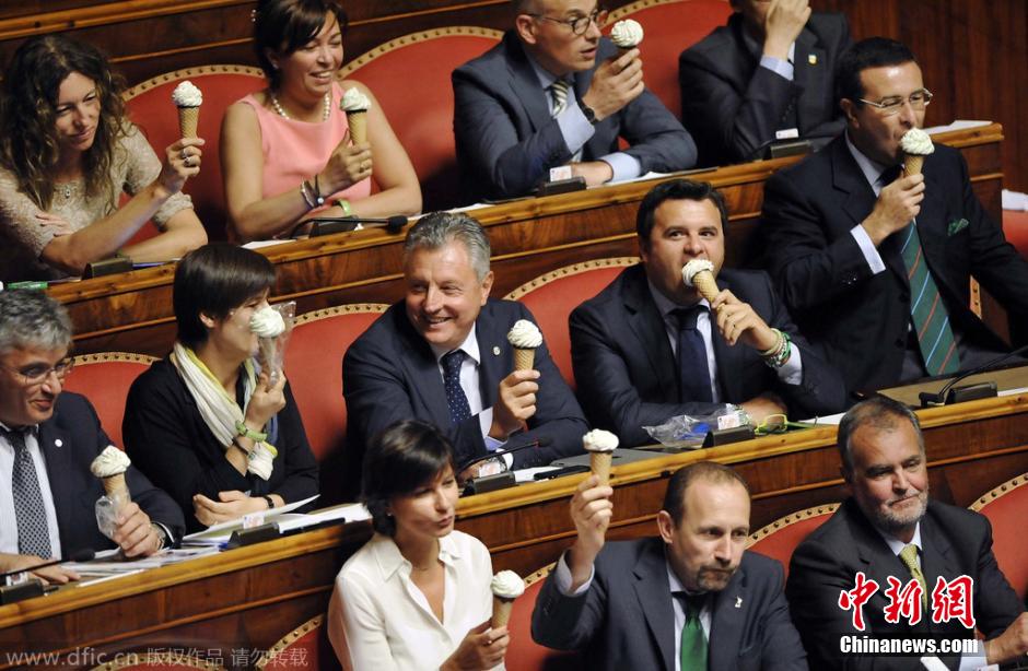 意大利议会悠闲照:议员吃冰淇淋 总理咬手指(组图)
