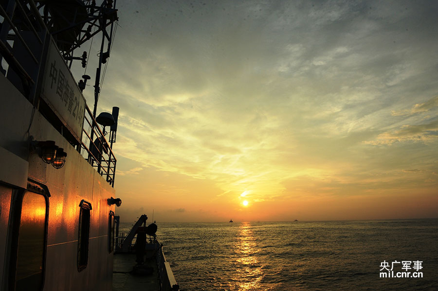 朝阳辉映海警船 李建伟摄