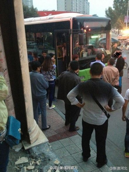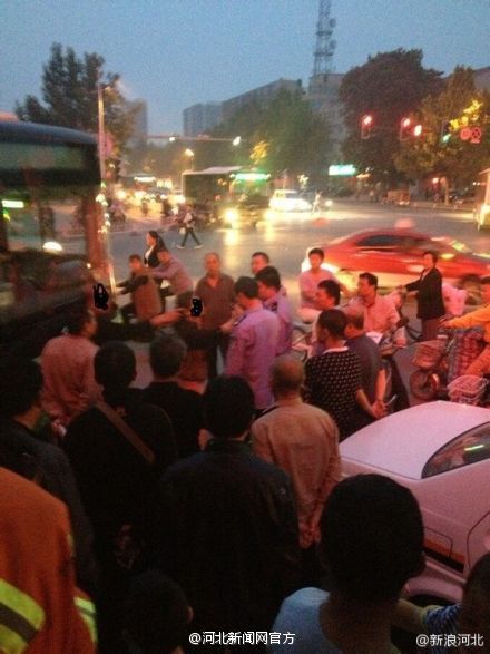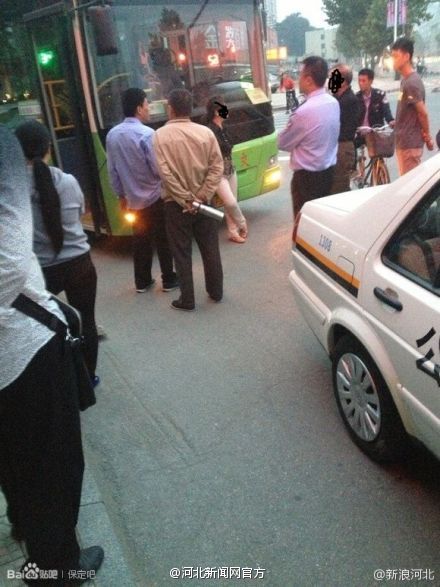 9月21日,网友“W—恋战”在百度贴吧“保定吧”发表帖子,曝出自己在红旗大街巧遇的一场因公交让座引发的纠纷事件。据“W—恋战”称,图中的妇女和老人因上车后几名年轻大学生没有给自己让座而感到气愤,而对此无动于衷的公交司机更是激怒了两人,便随即下车挡在车前,表示“就这么耗着,今天谁也别想走”。
