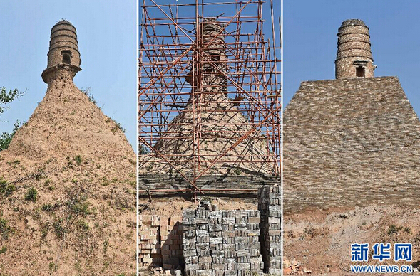 山西祁县“塔坚强”修缮前后对比照