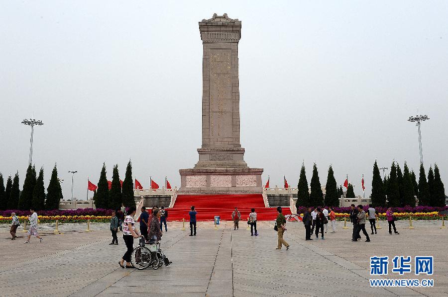 北京天安门广场上,人民英雄纪念碑巍然耸立,纪念碑正面镌刻着毛泽东题写的“人民英雄永垂不朽”八个鎏金大字。背面为毛泽东起草、周恩来书写的碑文:“三年以来,在人民解放战争和人民革命中牺牲的人民英雄们永垂不朽!三十年以来,在人民解放战争和人民革命中牺牲的人民英雄们永垂不朽!由此上溯到一千八百四十年,从那时起,为了反对内外敌人,争取民族独立和人民自由幸福,在历次斗争中牺牲的人民英雄们永垂不朽!” 新华社记者 何俊昌 摄