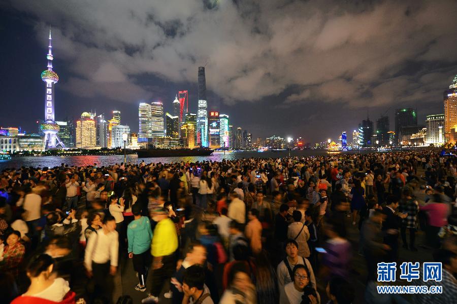 9月30日晚,上海外滩观景平台人潮涌动。