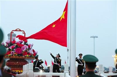 昨日清晨6时10分,天安门广场,国旗护卫队88名护卫队员组成的方队首次亮相,在全场观众齐唱的国歌声中,五星红旗冉冉升起。