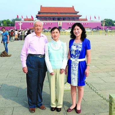 时隔三十一年,二○一四年九月二十一日,温景恒与大女儿温红征、二女儿温红梅在天安门广场留影。