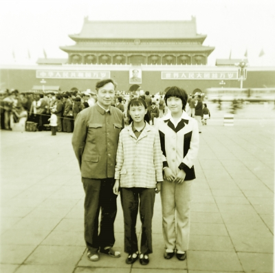 一九八三年,温景恒与大女儿温红征、二女儿温红梅在天安门广场留影。