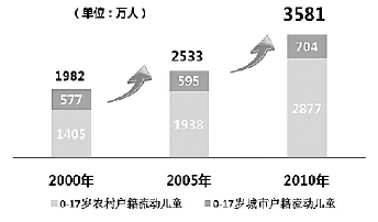 数据一:流动儿童数量已达3581万(单位:万人)