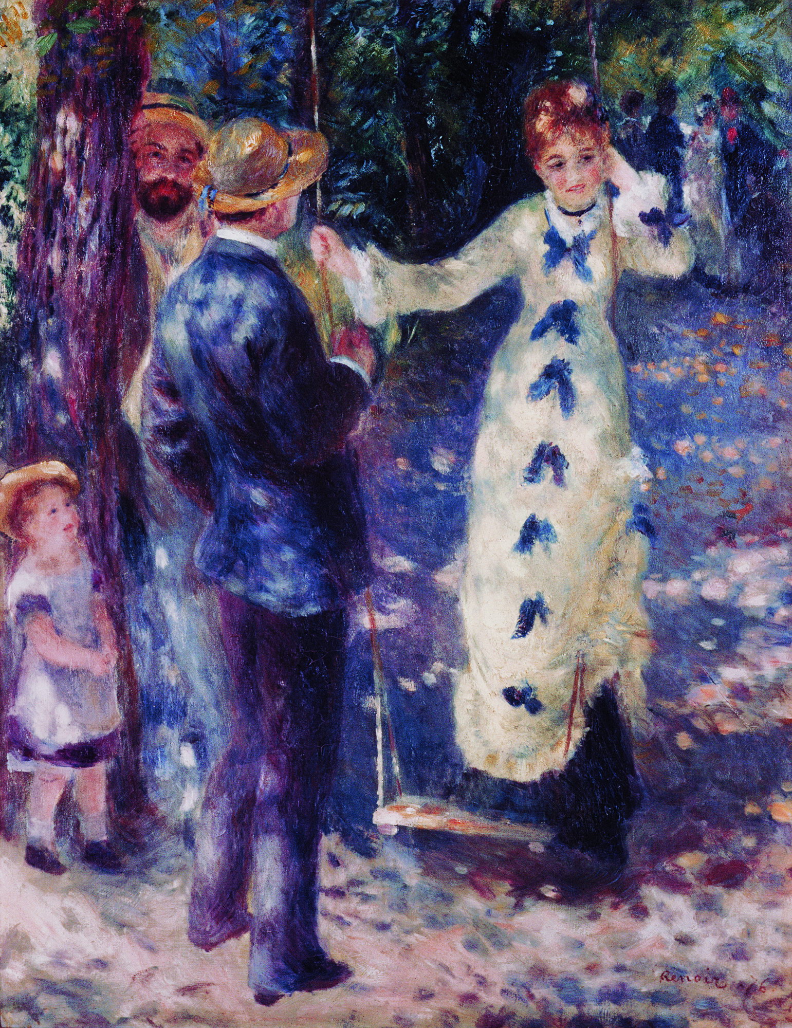 显而易见,钟情于光的效应是印象主义画家共同的艺术风格。1870年,29岁的雷诺阿跟随莫奈在巴黎郊区塞纳河附近写生,创作了着力表现水与倒影的名作《青蛙塘》,这标志着他印象主义风格的形成。但此后,与绝大部分印象派画家不同,雷诺阿创作的风景画数量远不如人物画多。他曾经说:“自然之中,决无贫贱之分。在阳光底下,破败的茅屋可以看成与宫殿一样,高贵的皇帝和贫困的乞丐是平等的。”他的人物画不仅继承了从古典主义、浪漫主义不断深化的启蒙精神,更重要的是,无论是《船上的午宴》、《红磨坊的舞会》、《戴草帽的女孩》等名作,还是他所擅长的儿童和裸体女性,他画面中的人物都来自于新的社会阶层,工业城市的市民、巴黎的市民,或者更准确的说,来自于城市中产阶级。以新兴城市中产阶级为对象的写生不同于以往历史时期中任何宗教画、贵族肖像画当中所体现出的人性解放,由于1851年湿版摄影术的问世终结了以“摄影”为目的的写实主义肖像画,人物画得以成为画家真正的主观意向的创作。