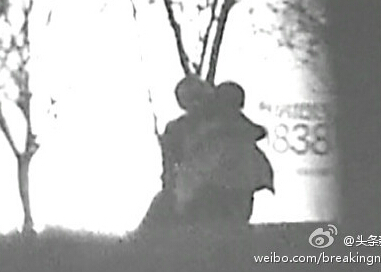 网曝视频中,一对男女在小树林里耳语。(网络截图)
