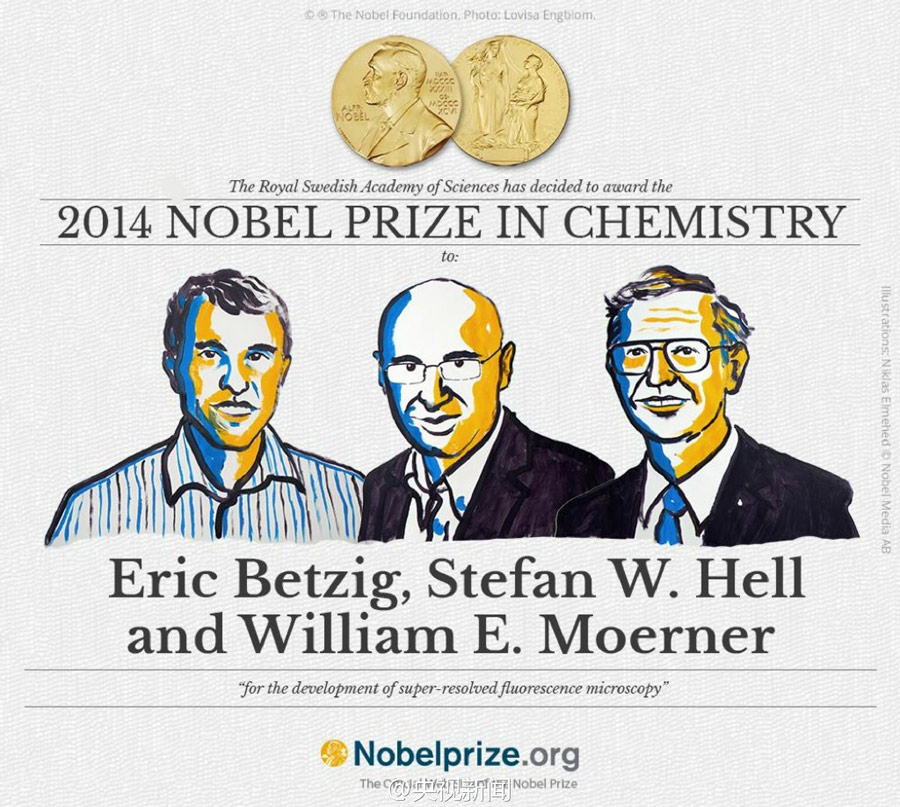 美德3位科学家获2014诺贝尔化学奖(组图)