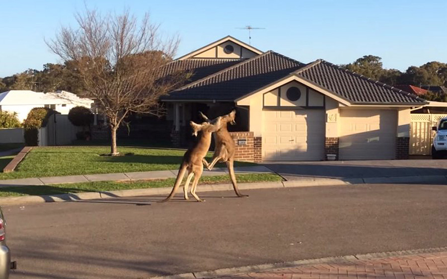 普通人街头打架经常见,但是两只袋鼠在光天化日下当街“大打出手”就有些少见了。近日,有人拍到两只成年雄性袋鼠在澳大利亚新南威尔士州的大街上公然“斗殴”五分钟。