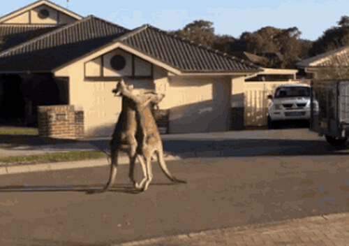 袋鼠街头上演5分钟拳击大战。