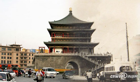 近日,西部网网友李高峰在陕西论坛发布了一组西安多个地标性建筑的“穿越”图。钟楼、永宁门、大雁塔等西安标志性建筑,甚至街上人们的交通工具、衣着打扮的“新”和“旧”形成鲜明对比,“穿越感”跃然图上。时间带来的沧桑变化让古城西安的历史更显厚重。