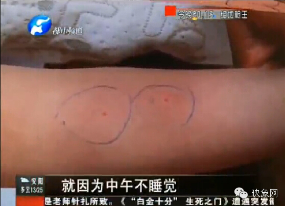 孩子说,针眼是幼儿园老师用针扎的,原因是贪玩了,中午不愿意睡觉。