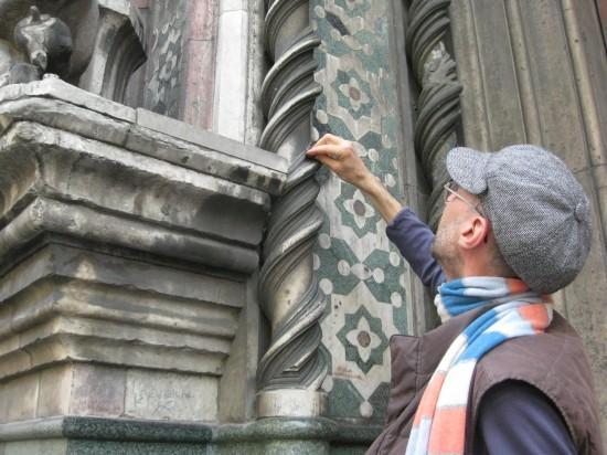 如果你在佛罗伦萨看到一个成年人踩着梯子、从雕塑和建筑上收集灰尘,那么一定是Alessandro Ricci在为他的画收集“颜料”——雾霾。