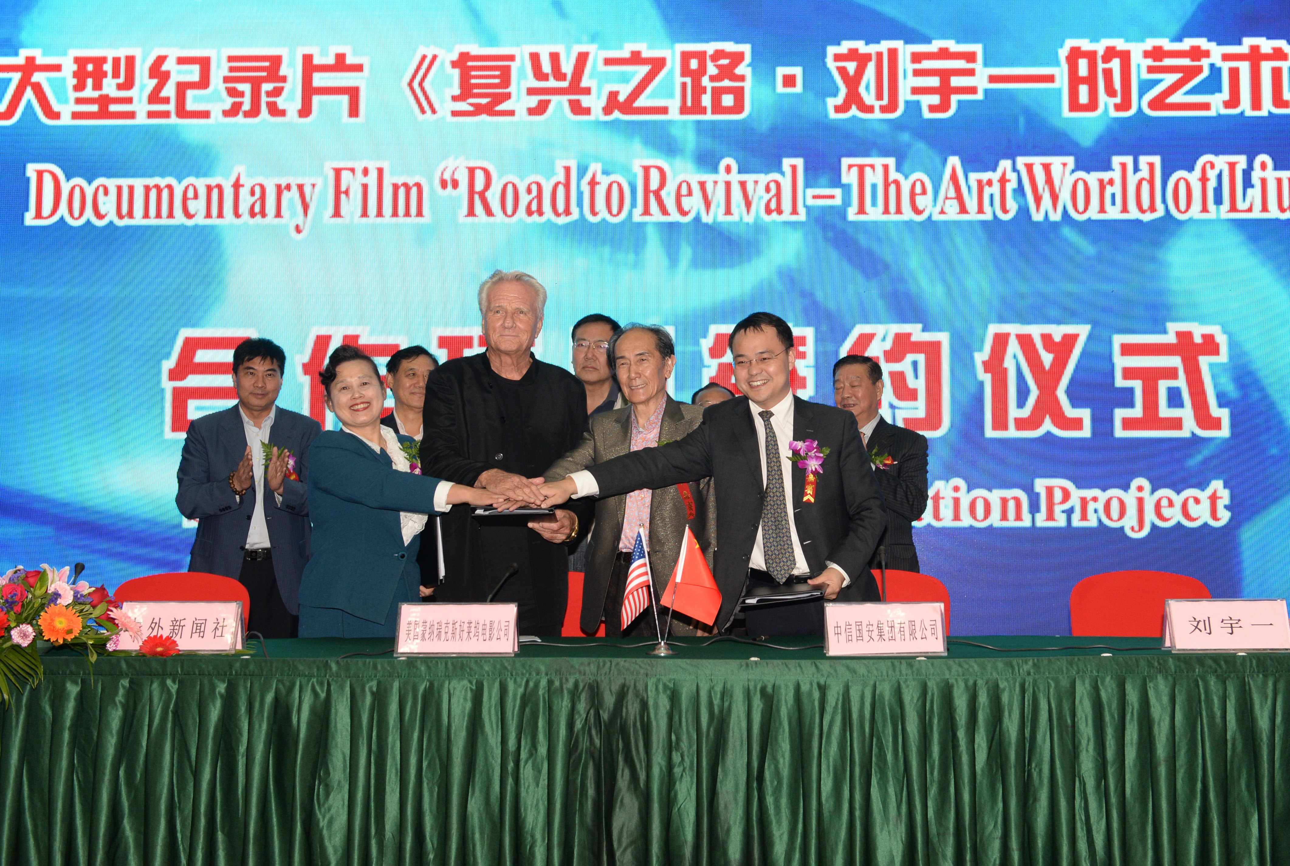 《复兴之路·刘宇一的艺术世界》大型纪录片由美国蒙纳瑞克斯好莱坞电影公司、中信国安集团有限公司等合作出品,为克里斯·里比执导的《神秘中国》纪录片系列的其中一部影片?!渡衩刂泄芳吐计泄⒃廾乐泄?、弘扬中国传统文化的大型史诗对外宣传纪录片,将在全美多个公共频道同步播出,展现真实美丽中国的无限魅力。
