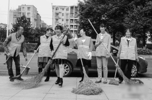 10月12日,6名开车上班的环卫工人集体合影