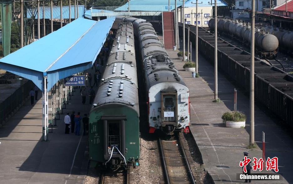 10月13日,??吭谀暇┲谢呕鸪嫡镜?102次列车即将驶离车站。从10月14日凌晨起,拥有78年历史的南京中华门火车站将停止办理客运业务,连日来市民蜂拥而至,用乘坐客车的方式告别这座老牌火车站。南京中华门火车站于1935年4月随江南铁路的建成而同步投入使用,是中国著名的近现代铁路历史建筑。中新社发 泱波 摄