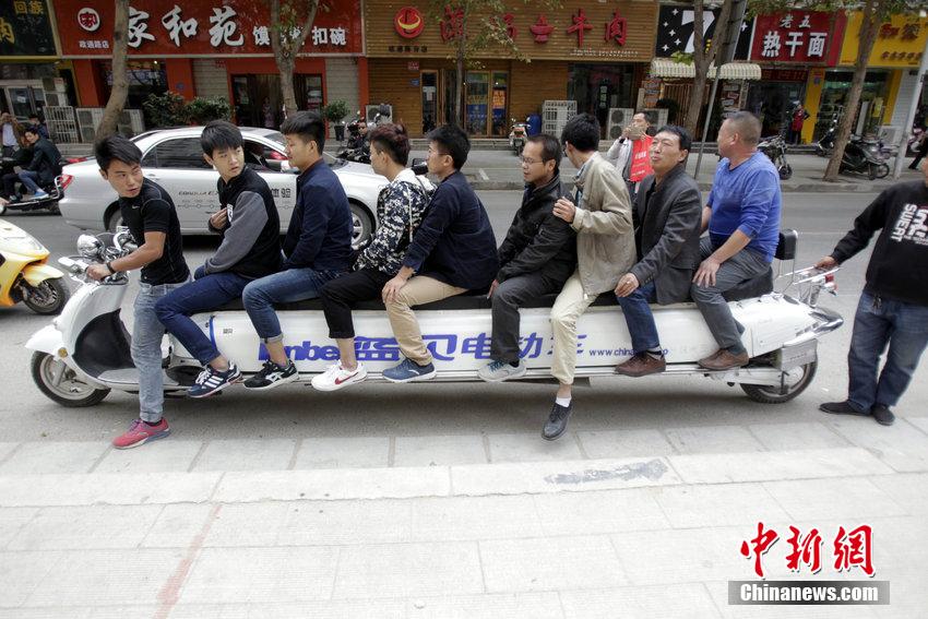 原标题:郑州现4.7米长电动车自行车 可同坐十多人