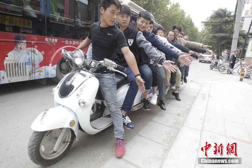 电动车上排排坐:郑州现4.7米长电动自行车(图)