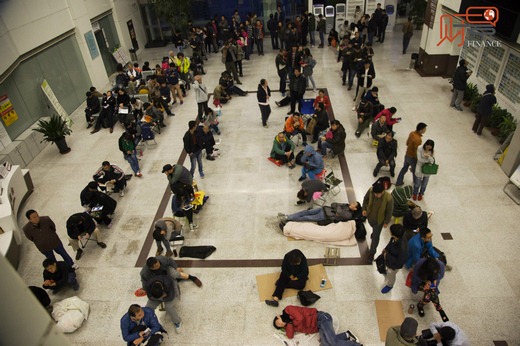 凌晨3点,医院门诊大厅排起了长队(人民网贾兴鹏摄)