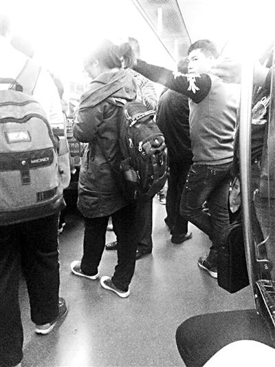 昨天下午5点30分左右记者乘坐地铁时的情形 摄影 姜雅文
